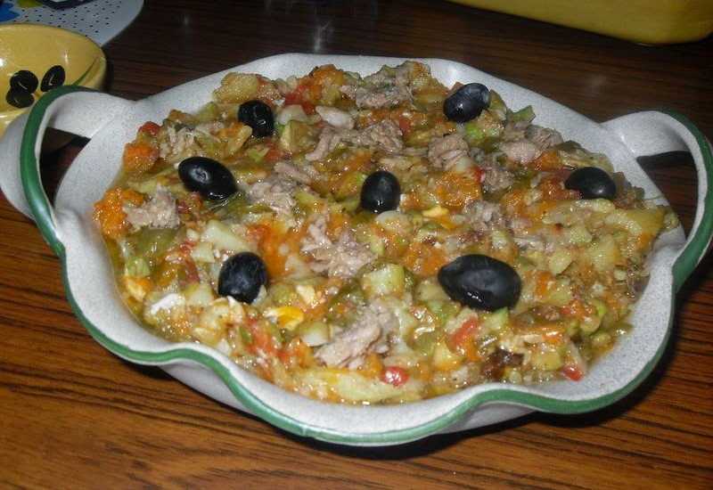 La deuxième étape consiste à chauffer une grande poêle à frire et y faire chauffer l’huile d’olive. Lorsqu’elle est bien chaude, il faut ajouter les pommes de terre à cuire sans les remuer pendant la cuisson, puisqu’elles risqueraient de se coller entre elles. Après la cuisson, il faut les retirer grâce à une écumoire, les poser sur du papier absorbant et les réserver dans un plat. Avec la même huile, il faut faire la même chose avec l’oignon émincé, l’aubergine, la courgette émincée, les piments et les demi-tomates.